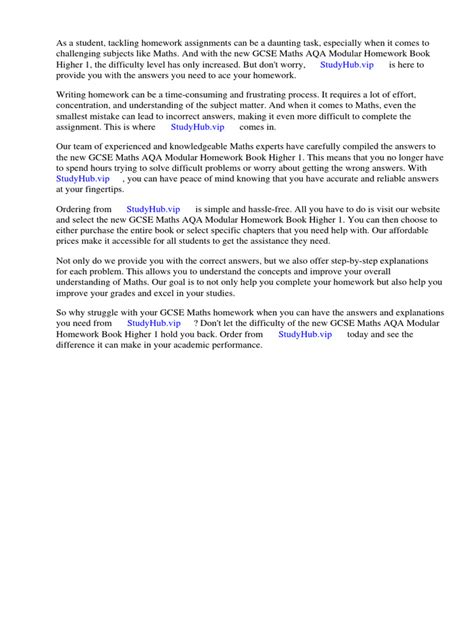 Read Online New Gcse Maths Aqa Modular Homework Book Higher 1 Answers Epub online is a convenient and frugal way to read New Gcse Maths Aqa Modular Homework Book Higher 1 Answers you love right from the comfort of your own home. Yes, there sites where you can get Epub "for free" but the ones listed below are clean from viruses and completely legal to use.